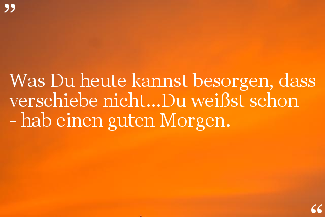 Was Du heute kannst besorgen, dass verschiebe nicht...Du weißst schon - hab einen guten Morgen.