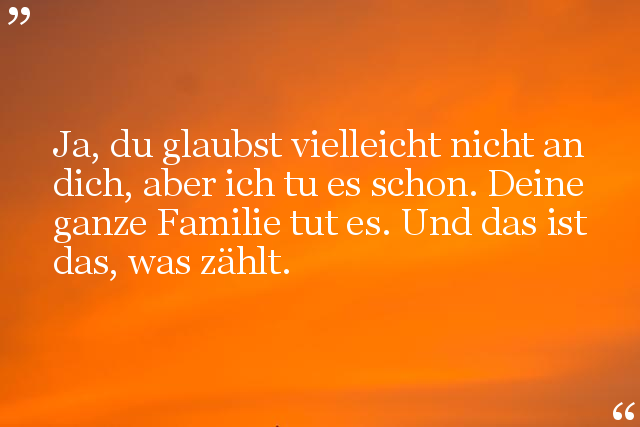Ja, du glaubst vielleicht nicht an dich, aber ich tu es schon. Deine ganze Familie tut es. Und das ist das, was zählt.