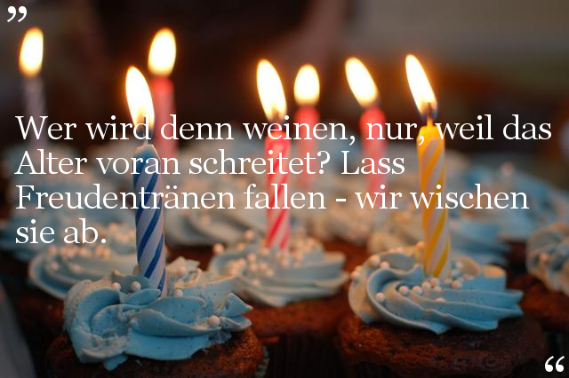 Wer wird denn weinen, nur, weil das Alter voran schreitet? Lass Freudentränen fallen - wir wischen sie ab.