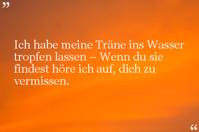 Ich habe meine Träne ins Wasser tropfen lassen – Wenn du sie findest höre ich auf, dich zu vermissen.