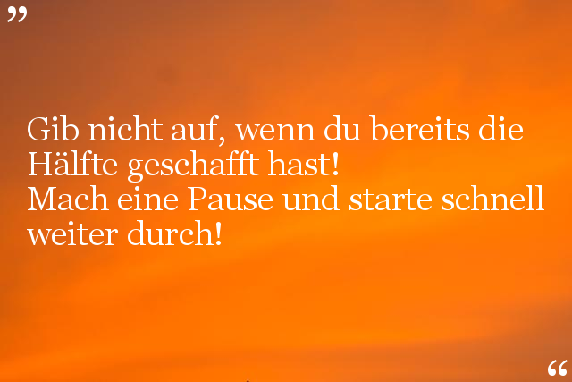 Gib nicht auf, wenn du bereits die Hälfte geschafft hast!