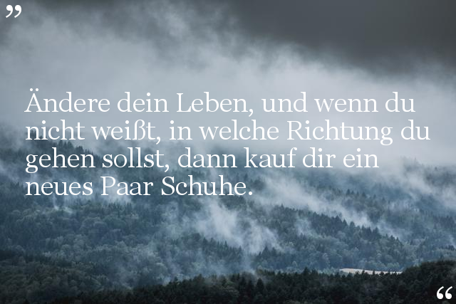 Ändere dein Leben, und wenn du nicht weißt, in welche Richtung du gehen sollst, dann kauf dir ein neues Paar Schuhe.