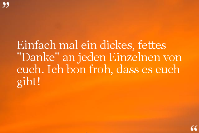 Einfach mal ein dickes, fettes "Danke" an jeden Einzelnen von euch. Ich bon froh, dass es euch gibt!