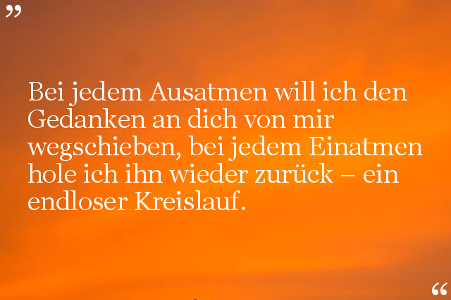 Bei jedem Ausatmen will ich den Gedanken an dich von mir wegschieben, bei jedem Einatmen hole ich ihn wieder zurück – ein endloser Kreislauf.
