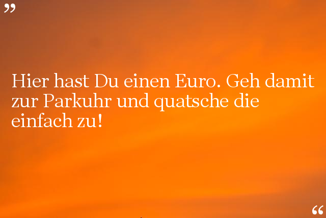 Hier hast Du nen Euro, wirf ihn in die Parkuhr und erzähle ihr diesen Müll.