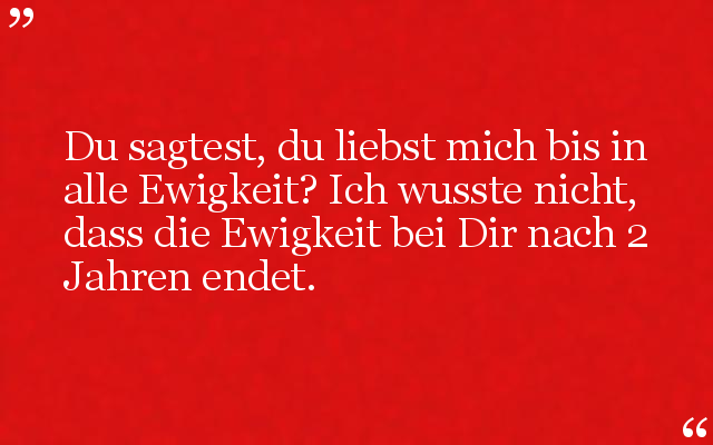 Du sagtest, du liebst mich bis in alle Ewigkeit? Ich wusste nicht, dass die Ewigkeit bei Dir nach 2 Jahren endet.