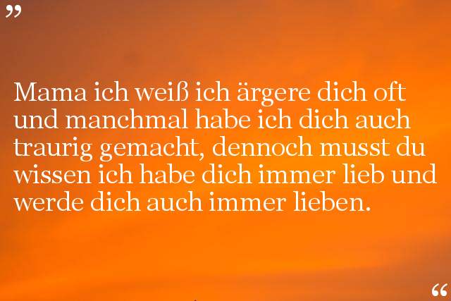 Mama ich weiß ich ärgere dich oft und manchmal habe ich dich auch traurig gemacht, dennoch musst du wissen ich habe dich immer lieb und werde dich auch immer lieben.