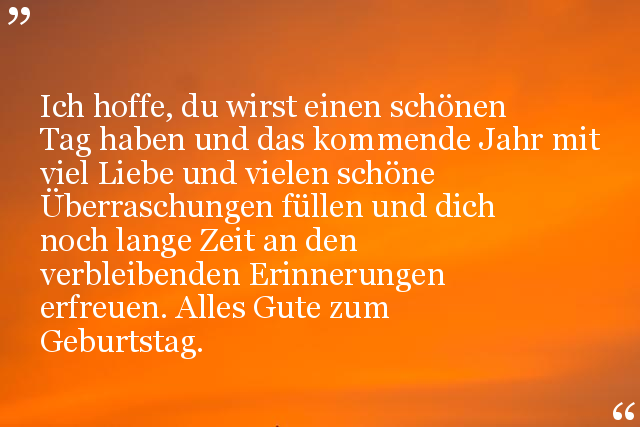 Ich hoffe, du wirst einen schönen Tag haben und das kommende Jahr mit viel Liebe und vielen schöne Überraschungen füllen und dich noch lange Zeit an den verbleibenden Erinnerungen erfreuen. Alles Gute zum Geburtstag.