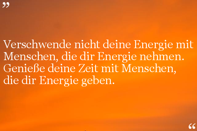Verschwende nicht deine Energie mit Menschen, die dir Energie nehmen. Genieße deine Zeit mit Menschen, die dir Energie geben.