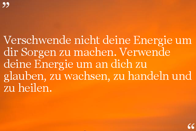 Verschwende nicht deine Energie um dir Sorgen zu machen. Verwende deine Energie um an dich zu glauben, zu wachsen, zu handeln und zu heilen.