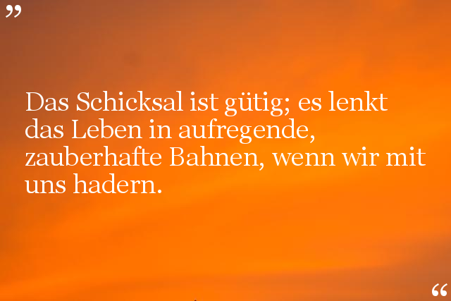 Das Schicksal ist gütig; es lenkt das Leben in aufregende, zauberhafte Bahnen, wenn wir mit uns hadern.