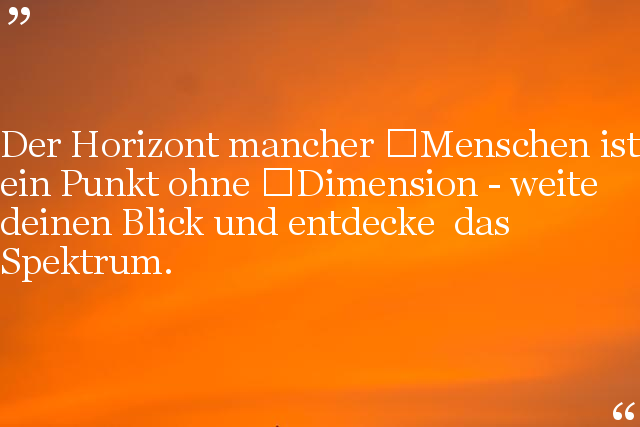 Der Horizont mancher Menschen ist ein Punkt ohne Dimension - weite deinen Blick und entdecke das Spektrum.