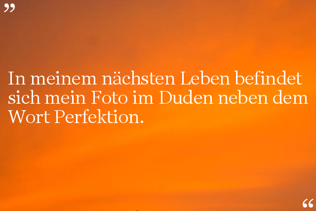 In meinem nächsten Leben befindet sich mein Foto im Duden neben dem Wort Perfektion.