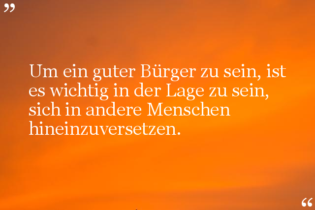 Um ein guter Bürger zu sein, ist es wichtig in der Lage zu sein, sich in andere Menschen hineinzuversetzen.