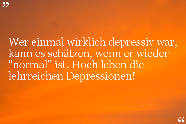 Wer einmal wirklich depressiv war, kann es schätzen, wenn er wieder "normal" ist. Hoch leben die lehrreichen Depressionen!