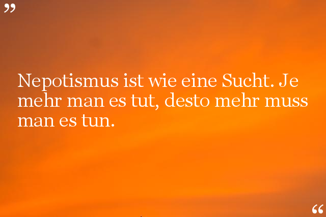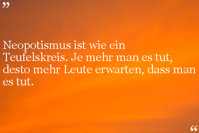 Neopotismus ist wie ein Teufelskreis. Je mehr man es tut, desto mehr Leute erwarten, dass man es tut.