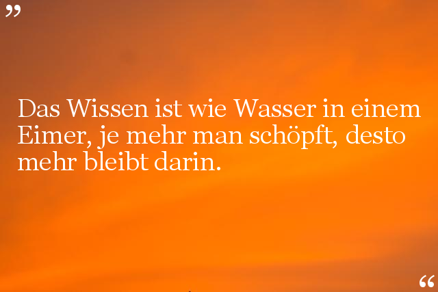 Das Wissen ist wie Wasser in einem Eimer, je mehr man schöpft, desto mehr bleibt darin.