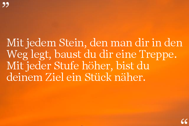Mit jedem Stein, den man dir in den Weg legt, baust du dir eine Treppe. Mit jeder Stufe höher, bist du deinem Ziel ein Stück näher.