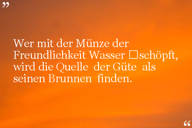 Wer mit der Münze der Freundlichkeit Wasser schöpft, wird die Quelle der Güte als seinen Brunnen finden.