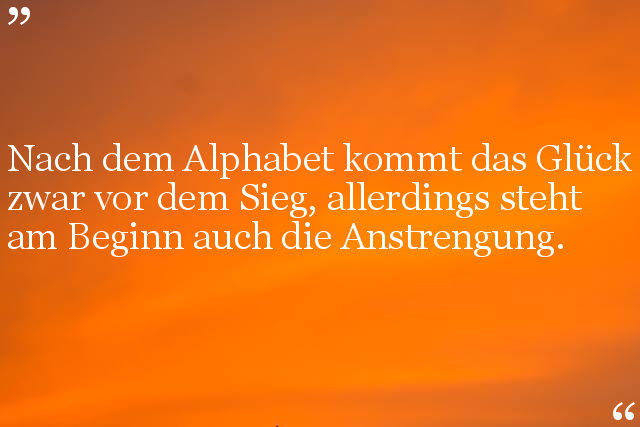 Nach dem Alphabet kommt das Glück zwar vor dem Sieg, allerdings steht am Beginn auch die Anstrengung.