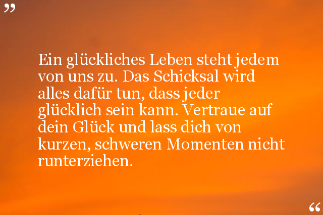 Ein glückliches Leben steht jedem von uns zu. Das Schicksal wird alles dafür tun, dass jeder glücklich sein kann. Vertraue auf dein Glück und lass dich von kurzen, schweren Momenten nicht runterziehen.