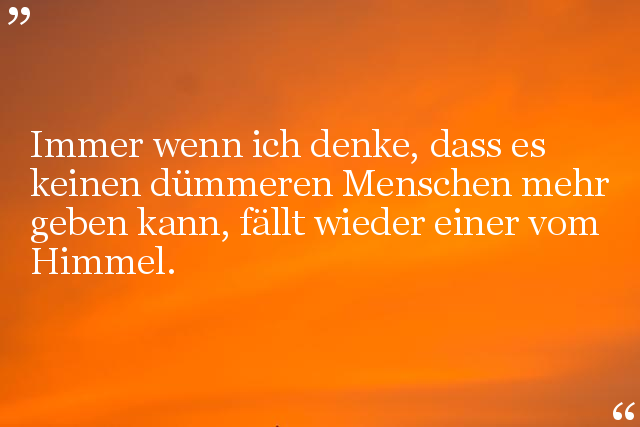 Immer wenn ich denke, dass es keinen dümmeren Menschen mehr geben kann, fällt wieder einer vom Himmel.