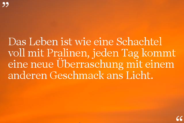 Das Leben ist wie eine Schachtel voll mit Pralinen, jeden Tag kommt eine neue Überraschung mit einem anderen Geschmack ans Licht.