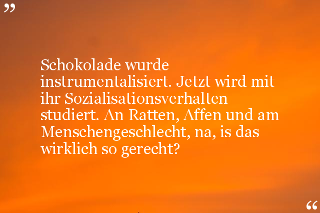 Schokolade wurde instrumentalisiert. Jetzt wird mit ihr Sozialisationsverhalten studiert. An Ratten, Affen und am Menschengeschlecht, na, is das wirklich so gerecht?