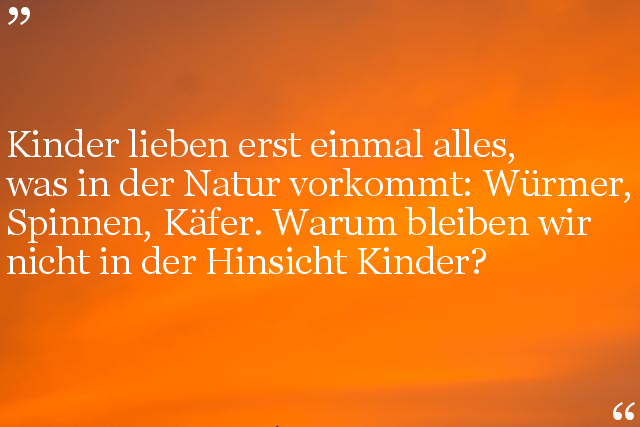 Kinder lieben erst einmal alles, was in der Natur vorkommt: Würmer, Spinnen, Käfer. Warum bleiben wir nicht in der Hinsicht Kinder?