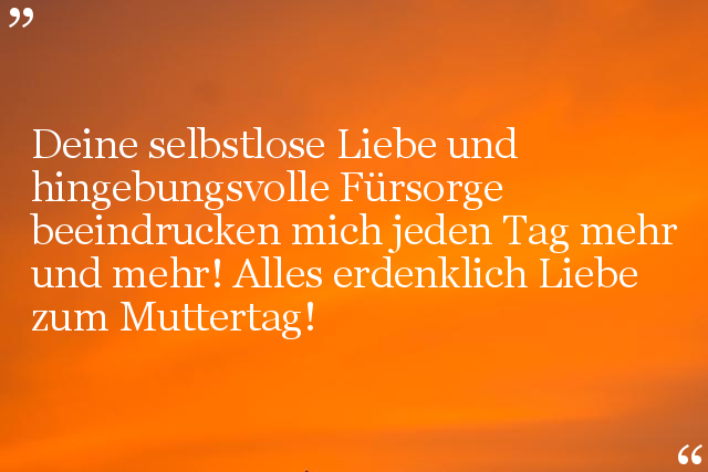 Deine selbstlose Liebe und hingebungsvolle Fürsorge beeindrucken mich jeden Tag mehr und mehr! Alles erdenklich Liebe zum Muttertag!