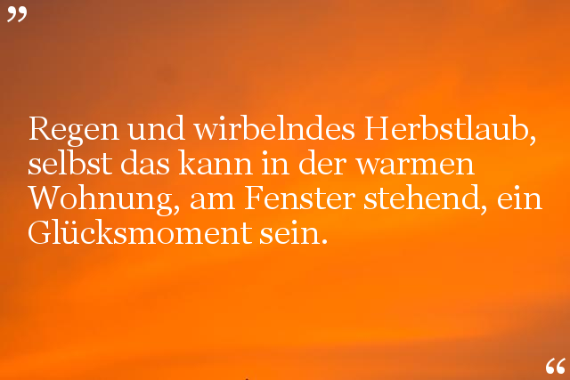 Regen und wirbelndes Herbstlaub, selbst das kann in der warmen Wohnung, am Fenster stehend, ein Glücksmoment sein.