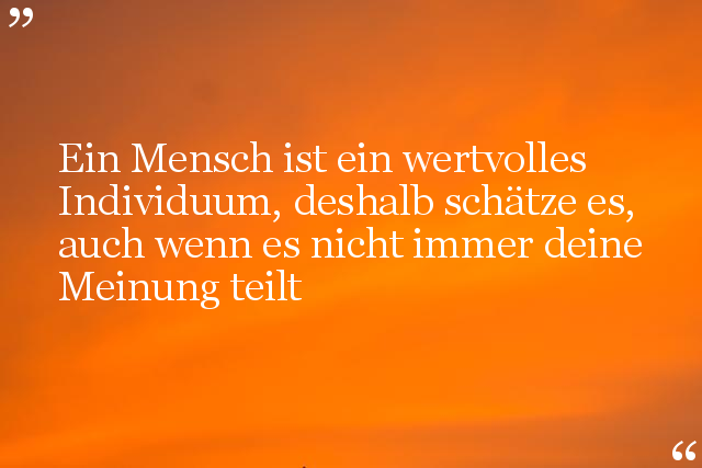 Ein Mensch ist ein wertvolles Individuum, deshalb schätze es, auch wenn es nicht immer deine Meinung teilt