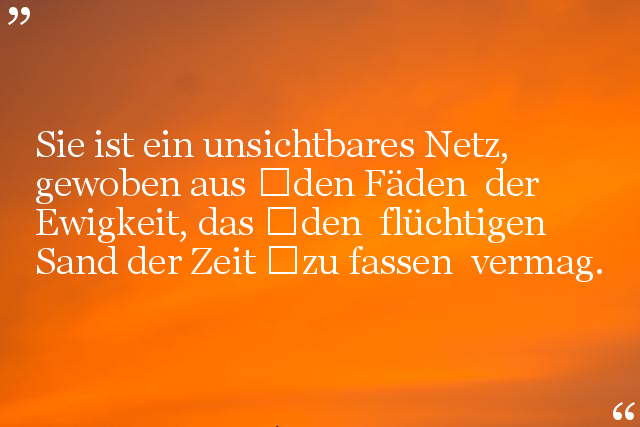 Sie ist ein unsichtbares Netz, gewoben aus den Fäden der Ewigkeit, das den flüchtigen Sand der Zeit zu fassen vermag.