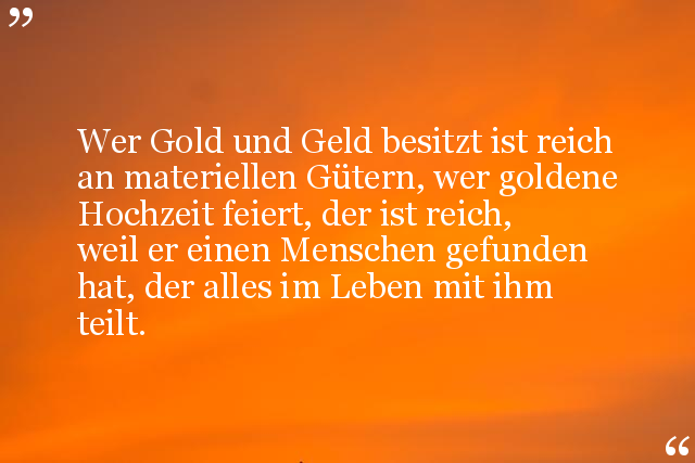 Wer Gold und Geld besitzt ist reich an materiellen Gütern, wer goldene Hochzeit feiert, der ist reich, weil er einen Menschen gefunden hat, der alles im Leben mit ihm teilt.