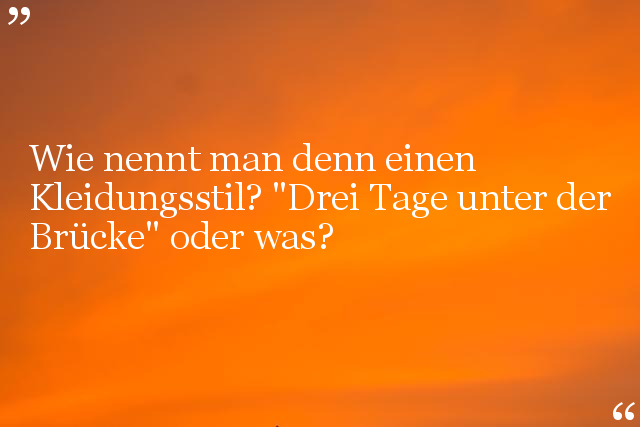 Wie nennt man denn einen Kleidungsstil? "Drei Tage unter der Brücke" oder was?