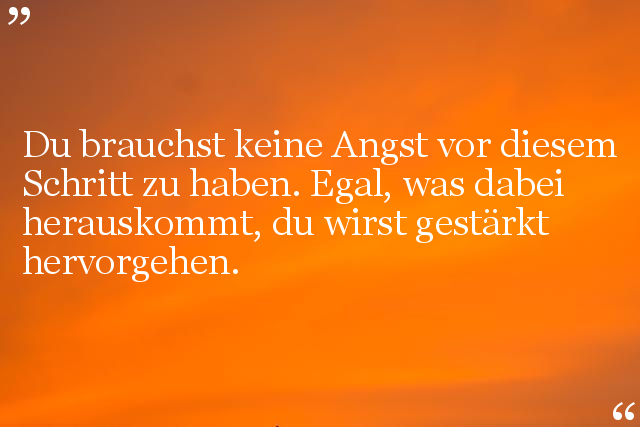 Du brauchst keine Angst vor diesem Schritt zu haben. Egal, was dabei herauskommt, du wirst gestärkt hervorgehen.