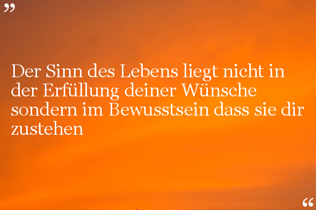 Der Sinn des Lebens liegt nicht in der Erfüllung deiner Wünsche sondern im Bewusstsein dass sie dir zustehen