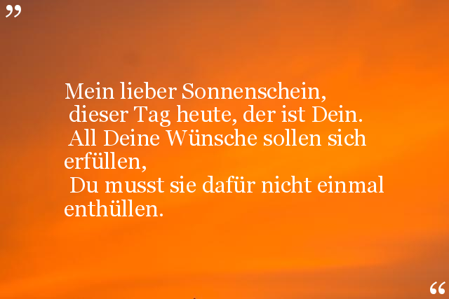 Lieber guter Sonnenschein, schön, dass du kannst bei mir sein, machst mir meinen Morgen fein, deine Strahlen streicheln mich - ich liebe Dich!