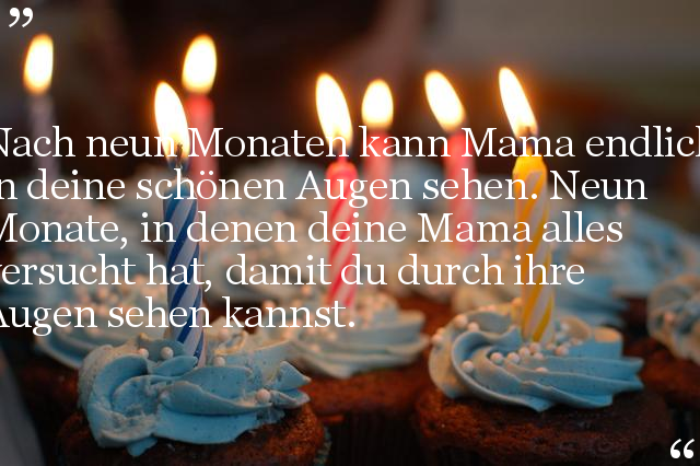 Nach neun Monaten kann Mama endlich in deine schönen Augen sehen. Neun Monate, in denen deine Mama alles versucht hat, damit du durch ihre Augen sehen kannst.