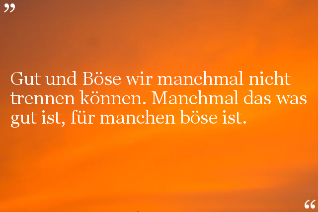 Gut und Böse wir manchmal nicht trennen können. Manchmal das was gut ist, für manchen böse ist.