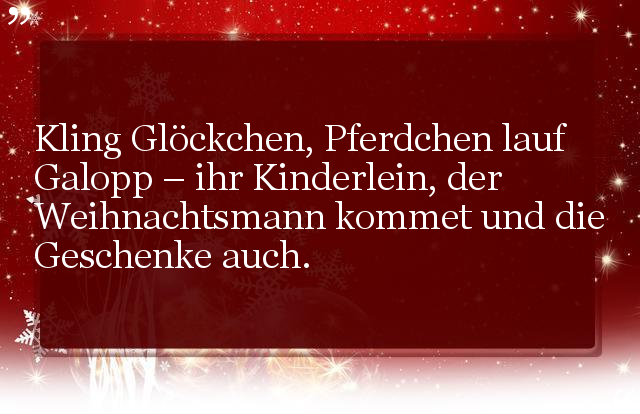 Kling Glöckchen, Pferdchen lauf Galopp – ihr Kinderlein, der Weihnachtsmann kommet und die Geschenke auch.