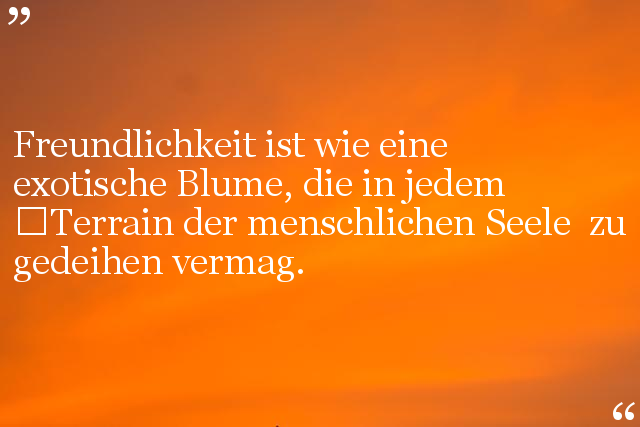Freundlichkeit ist wie eine exotische Blume, die in jedem Terrain der menschlichen Seele zu gedeihen vermag.