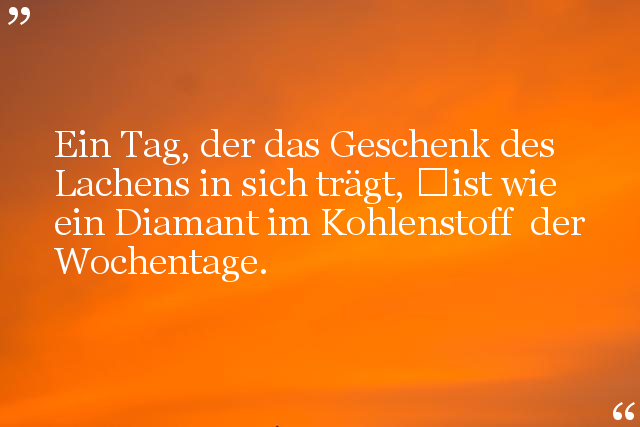 Ein Tag, der das Geschenk des Lachens in sich trägt, ist wie ein Diamant im Kohlenstoff der Wochentage.