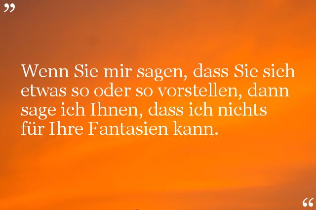 Wenn Sie mir sagen, dass Sie sich etwas so oder so vorstellen, dann sage ich Ihnen, dass ich nichts für Ihre Fantasien kann.