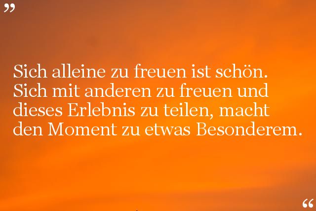 Sich alleine zu freuen ist schön. Sich mit anderen zu freuen und dieses Erlebnis zu teilen, macht den Moment zu etwas Besonderem.