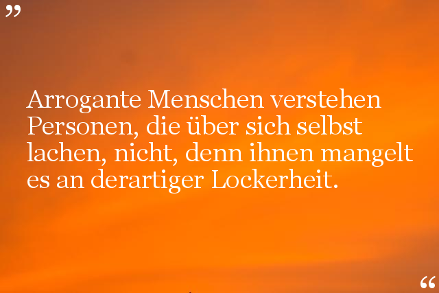 Arrogante Menschen verstehen Personen, die über sich selbst lachen, nicht, denn ihnen mangelt es an derartiger Lockerheit.
