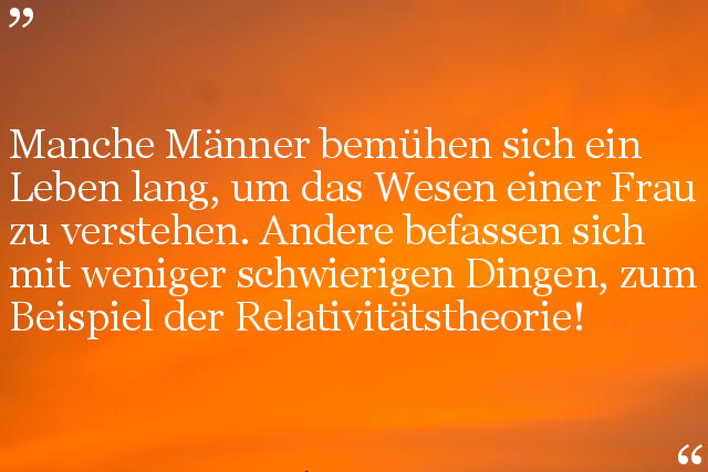 Manche Männer bemühen sich ein Leben lang, um das Wesen einer Frau zu verstehen. Andere befassen sich mit weniger schwierigen Dingen, zum Beispiel der Relativitätstheorie!