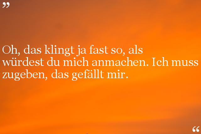 Oh, das klingt ja fast so, als würdest du mich anmachen. Ich muss zugeben, das gefällt mir.