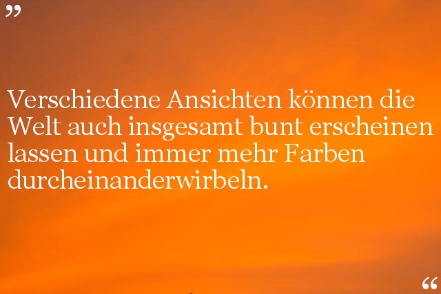 Verschiedene Ansichten können die Welt auch insgesamt bunt erscheinen lassen und immer mehr Farben durcheinanderwirbeln.
