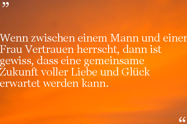 Wenn zwischen einem Mann und einer Frau Vertrauen herrscht, dann ist gewiss, dass eine gemeinsame Zukunft voller Liebe und Glück erwartet werden kann.
